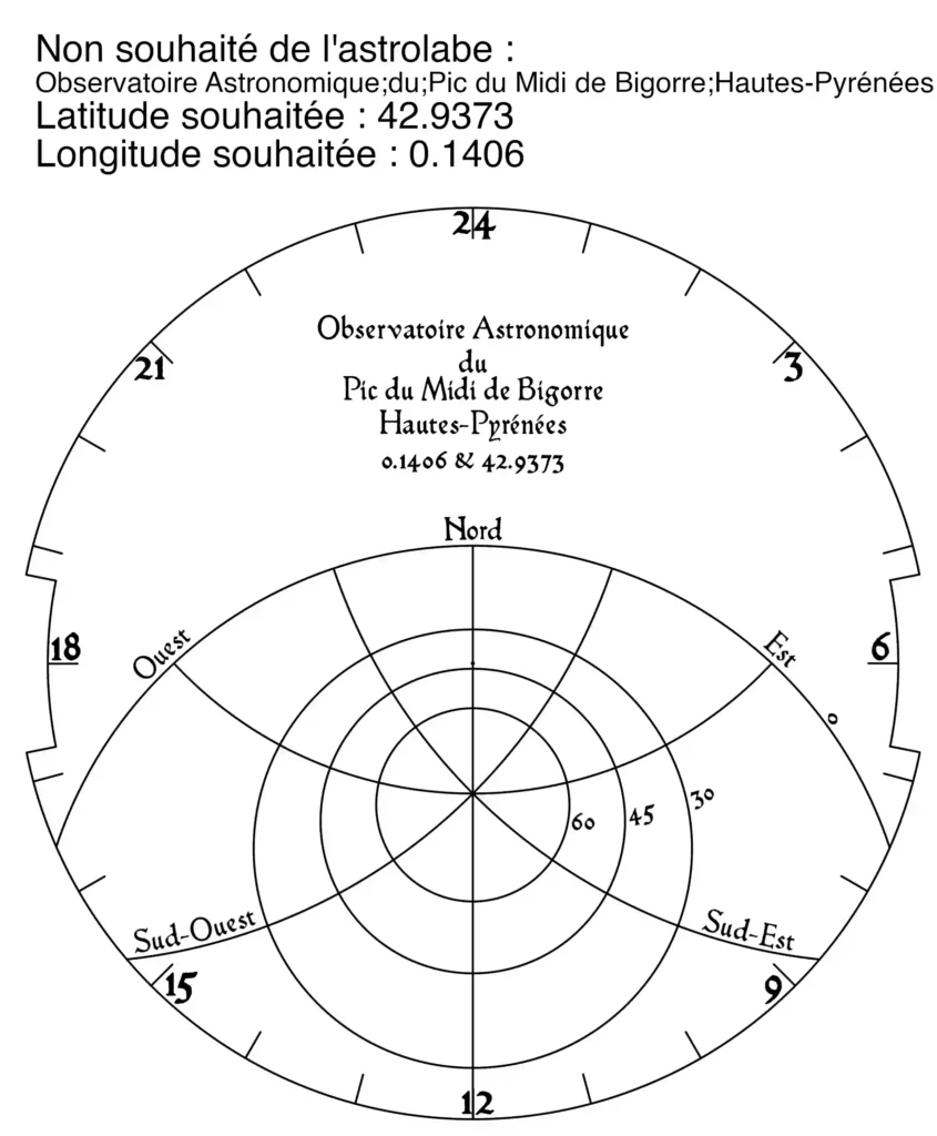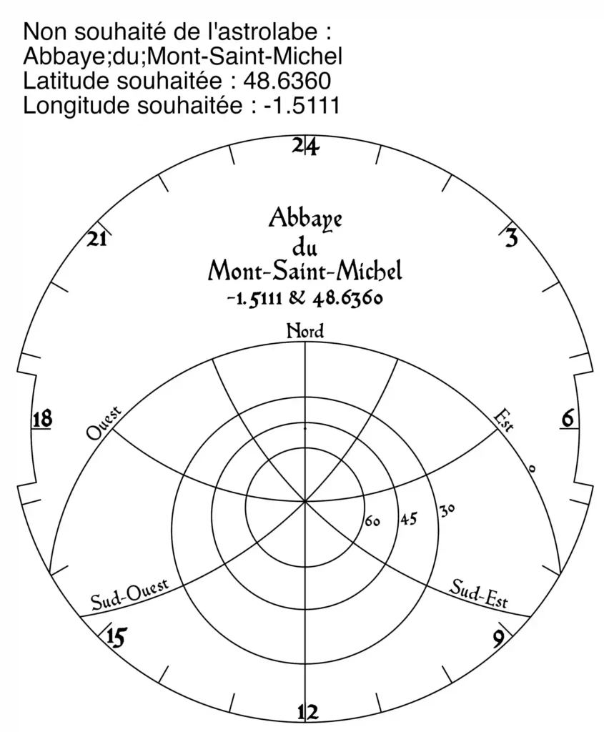 Exemples de données utilisées pour la personnalisation d’un astrolabe